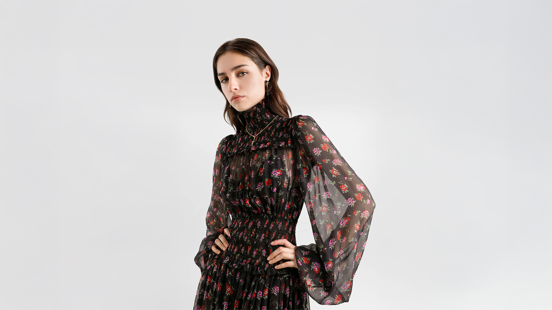 Given the unique nature of each garment and the partial or complete handcrafted processes involved, it is possible to encounter creations within the same collection that display subtle differences from one another. This is particularly evident in the world of prints, where placement and cuts may vary, or in artisanal inserts such as lace, which might exhibit slight variations between pieces.